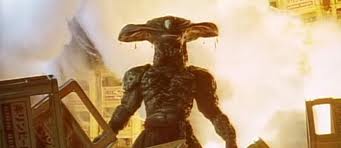 Directed by Katei Amemiya, the movie follows the story of Iria (played byYûko Moriyama) an intergalactic bounty hunter charged with hunting down Zeiram (Mizuho Yoshida, who also played Godzilla in costume) an equally intergalactic biomechanical killing machine that escaped intergalactic prison and has somehow landed on earth! Charged with capturing Zeiram, Iria goes to earth and creates a whole mini dimension to fight Zeiram in so that no innocents are hurt. Of course, two electritrians get caught up in the mess and are forced to escape and try and help Iria along the way. They are the sweet and innocent Teppie (Kunihiro Ida) and the know-it-all bumbler Kamiya (Yukijiro Hotaru). Also, Iria, in classic sci fi fashion, has a computer assistant named Bob (voiced by Masakanzu Handa) that helps with most exposition and explaining what the hell is going on.
