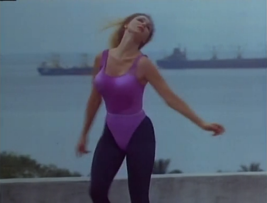 Then we’re introduced to Jake Raye (Don “The Dragon” Wilson), the dead fighter’s brother.  In an exposition-heavy scene he explains he quit fighting because he had to donate a kidney to his brother and intense physical trauma is not recommended when you’re missing a kidney.  This is never brought up again for the rest of the movie.  Almost immediately, he receives a call from the Philippines government telling him he has to take a trip in order to claim his brother’s ashes (waste of a kidney if you ask me).  Once he arrives he gets his bag stolen, retrieves it, and then loses the bag almost immediately after he hides it in a bush for some reason.  He is helped by a strange-acting man named Kwong (Joe Mari Avellana) who agrees to train him if he will take the place of Michael in the esteemed Red Fist Tournament.  Jake agrees, but the proceeds to go off with a drunk guy named Baby (Michael Spaner) and follows him back to his place for the hell of it.  It is there where Jake meets Baby’s sister Nancy (Riley Bowman) in one of my favorite “meet-cute”s in all of cinema.  He sees her on the roof as she awkwardly spins around while wearing a leotard.  When she notices him he remarks “You’re very flexible.”  Nothing flexible happens.  She literally just spins around.