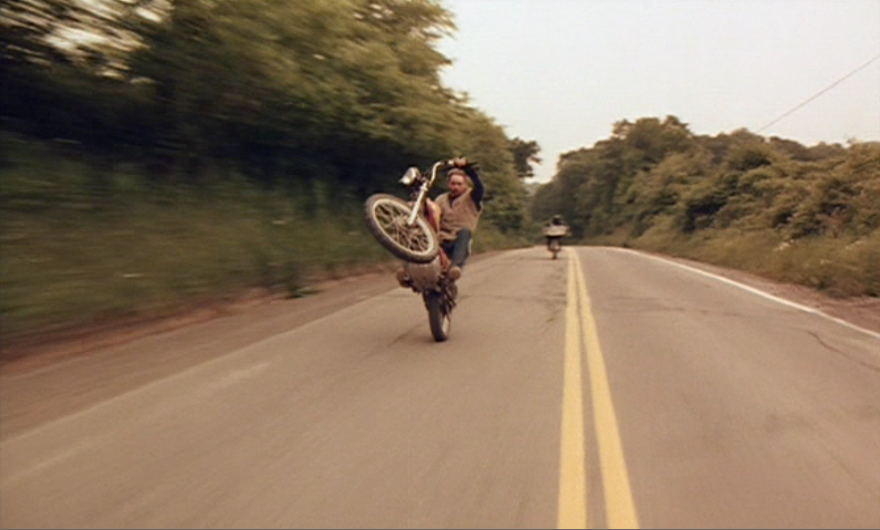 When a sheriff snoops around looking for a bribe, Billy refuses to pay off despite threats of “trouble” from the local law enforcement. When the same sheriff later plants weed on one of the motorcycle mechanics, Billy insists on accompanying his loyal “subject” to the jailhouse and getting locked up as well. It’s all for naught, though, since he just ends up being forced to watch the local cops beat his framed friend with nightsticks. This sends Billy into a frenzy as he is carried out of police station, struggling to provoke the same brutality on himself for a mere shot at revenge. So that’s the major conflict, correct? Nope, the cops aren’t really what the movie is about. They don’t show up again until nearly two hours of running time later when the corrupt sheriff gets his ass beat by Billy in a McDonald’s.