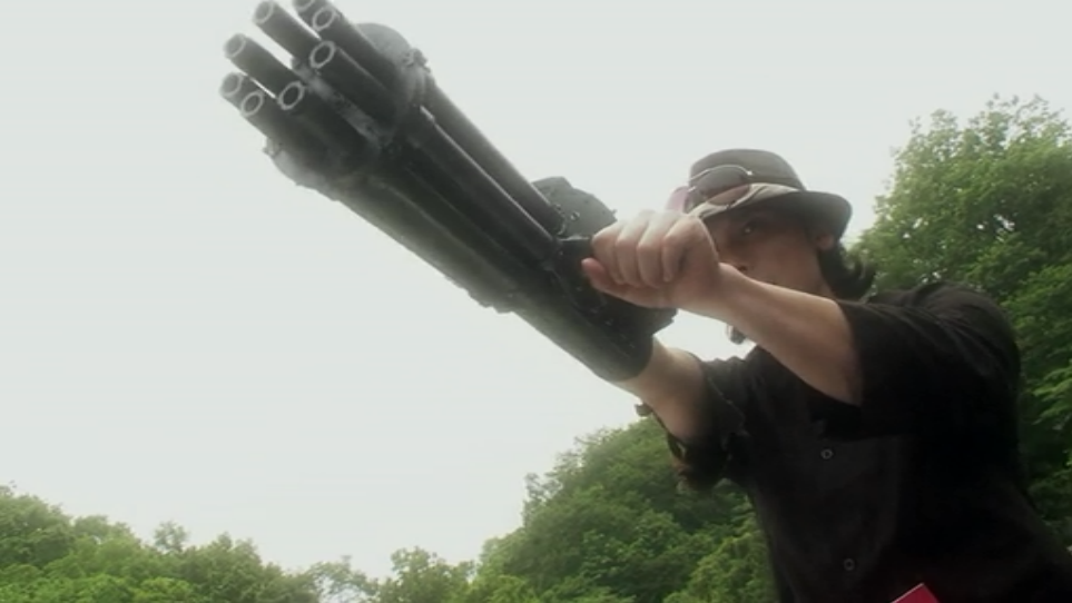 But this plot point with Tetsu is what leads to the money shot, and the major qualification of this movie as a worthy entry into a month celebrating the most extreme weapons in all entertainment. Tetsu’s sister’s body is converted into a naked, robotic Swiss Army Knife with a machine gun mouth, bullet-firing toes, a rocket launching vagina, and bulletproof skin. At first glance the idea of a villain violently flinging around a naked woman during a climactic fight is so excessively juvenile that it comes across as thoughtless and offensive. It’s a provocative idea that only serves to turn the audience off (or turn them on if their sexual predilections border on the criminal).