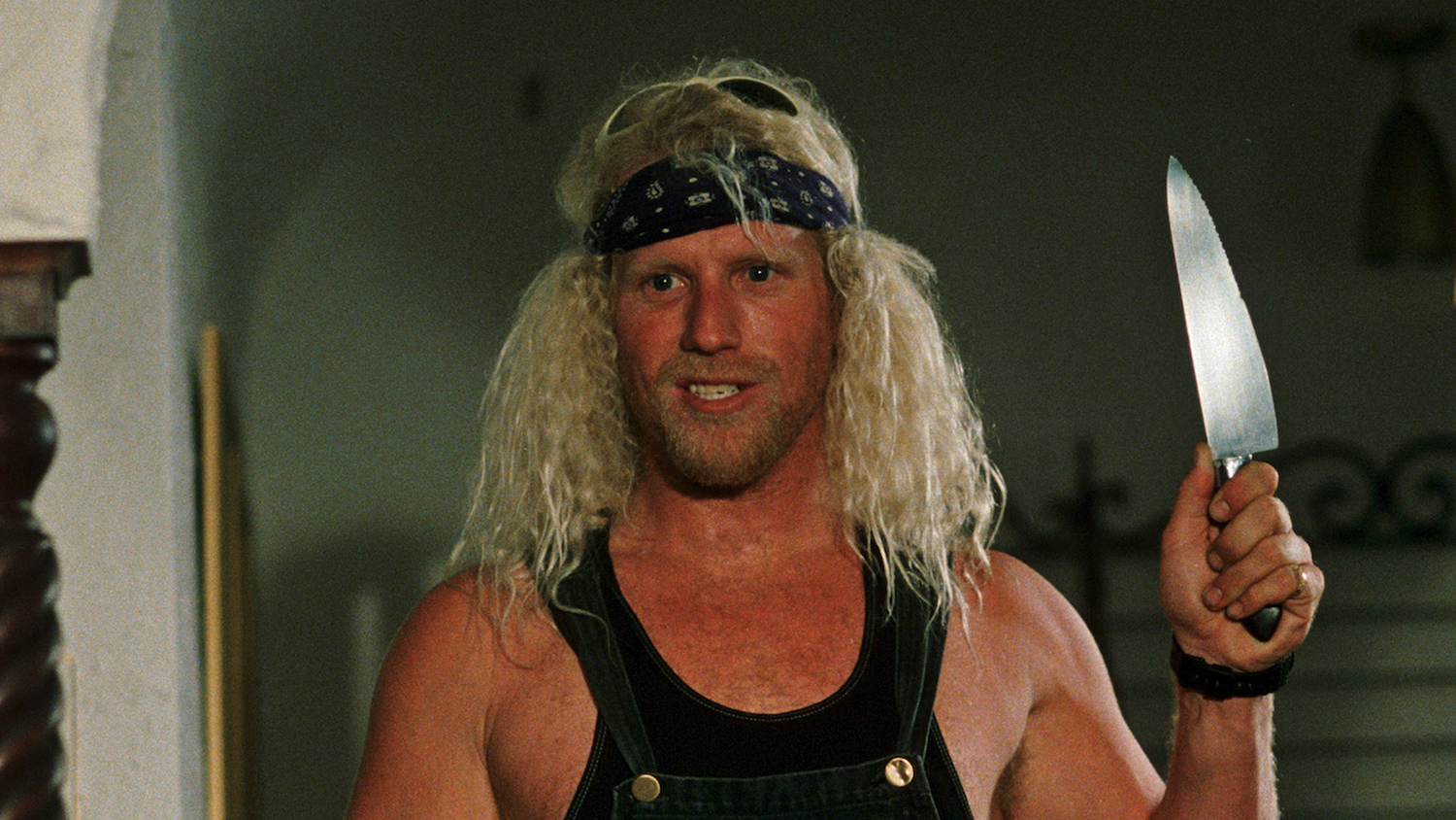 This leads awkwardly into the next plot point when her dead fiancé’s police officer brother is tasked with hunting down the new serial killer who, unbeknownst to him, is actually his ex-future sister-in-law. This somehow puts him on the path of Black Pepper, the son of Mina’s first victim: the biker who killed her significant other. Although her killing spree is the impetus for all this, Mina is all but absent from the rest of the movie while these new characters are introduced. There is one scene where they kind of show her get arrested but it’s edited even more strangely than the rest of the movie and is surprisingly perfunctory. The reason for this is that Dangerous Men was 26 years in the making. Actors came and went but instead of moving on to a new film, director John Rad improvised with dramatic 180 degree story shifts at the drop of a hat. Even without this background knowledge of the filming process, audiences will find themselves befuddled by multiple protagonist changes and a clear evolution of clothing styles from the 70’s through the 90’s.
